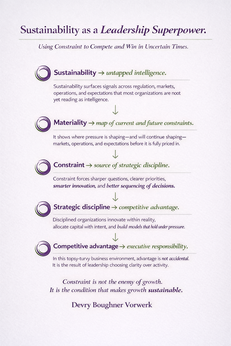 Leaders who use sustainability as a constraint-mapping tool—not a reporting function—move sooner, with more confidence, and with less rework.